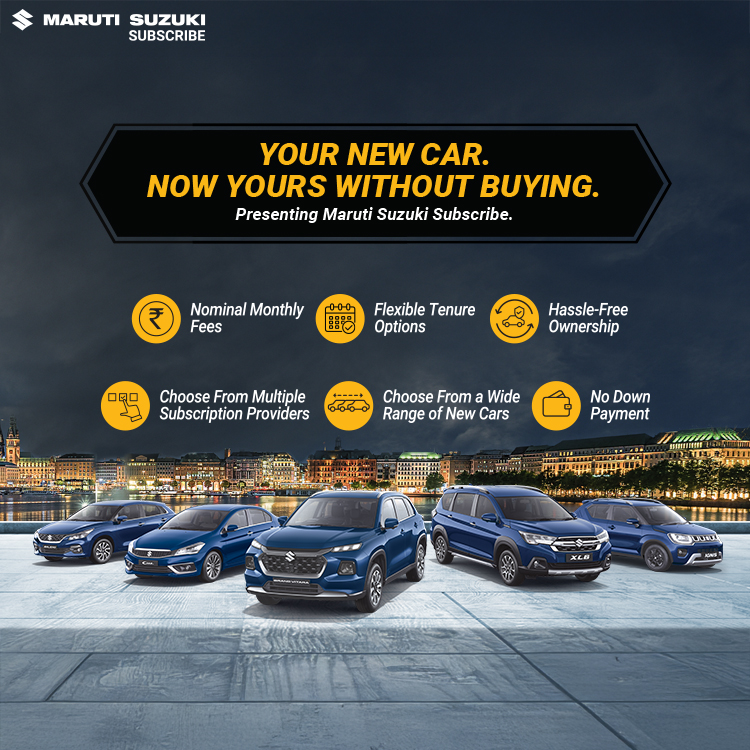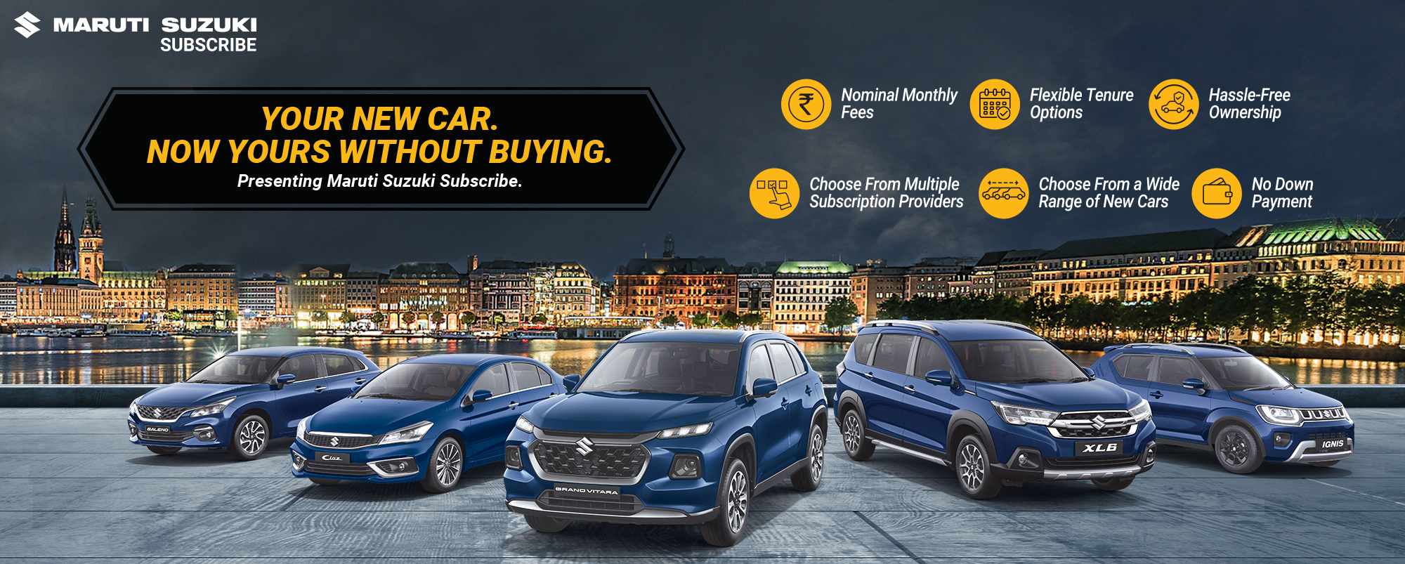 Maruti Suzuki Subscribe enables all customers to enjoy driving their preferred Maruti Suzuki cars without having to deal with all the financial responsibilities that come with owning a car.All you need to do is opt for a monthly subscription plan at a fixed monthly fee, which includes the routine maintenance and insurance costs, and choose a flexible tenure. At Sai Service in, , Mumbai, all Hatchback, Sedan, SUV, the MUV models line-up includes Baleno, Invicto, EVitara, Jimny, Ciaz, Ignis, Fronx, Grand Vitara, XL6. Here, you will enjoy Maruti Suzuki Subscribe benefits such as: